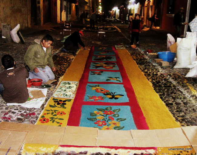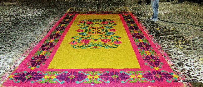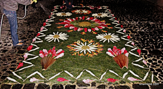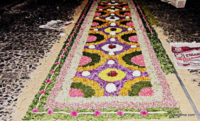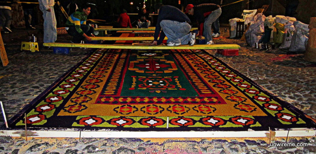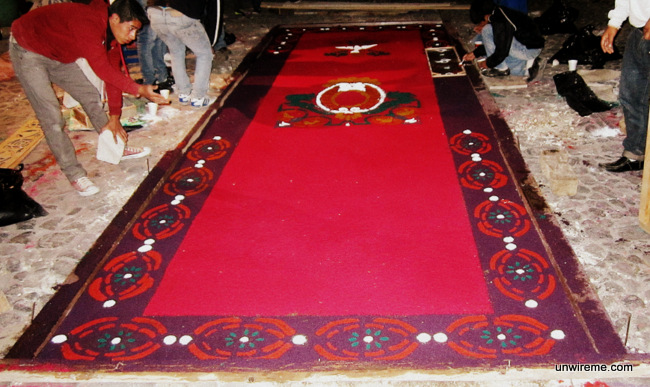 Some of the alfombras are made by families that have been residing in Antigua for generations. They lay down the alfombras in front of their house and this is a yearly family project that usually goes back generations.