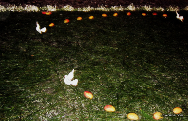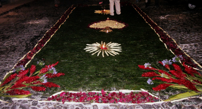 Some of the alfombras are interesting, such as the one made with mangoes. Alfombras are made to be walked on by anda bearers, so some of these alfombras present a challenge in an obstacle-course sort of way.